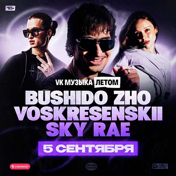 5 сентября в VK Музыка Летом состоится мощное музыкальное шоу, которое обещает взорвать вашу реальность и оставить незабываемые эмоции! На одной сцене соберутся три культовых артиста, каждый из которых определяет свои правила и создает уникальный звук: Bushido Zho, Voskresenskii и Sky Rae.