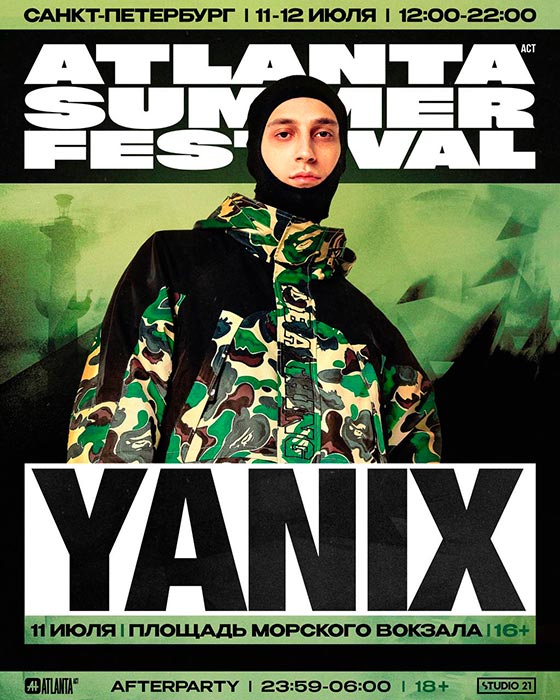 YANIX — настоящая легенда русского рэпа, артист, который умеет мгновенно цеплять своего слушателя. Это будет его пятое шоу на Атланте, и впервые — не сольный клаб, а выступление на нашем летнем фестивале, который вы так полюбили.