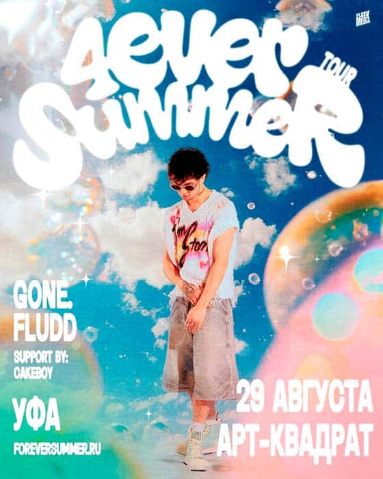 БилетыБилеты от /3200рДата /29 августа, 2025Начало /20:00Площадка /Арт-квадратАдрес /Уфа, ул. Чернышевского, 88Ограничение /16+Описание концерта Большой сольный концерт GONE.Fludd в Уфе — 29 августа. Концерт под открытым небом в рамках тура 4ever Summer. Другие даты концертов GONE.Fludd