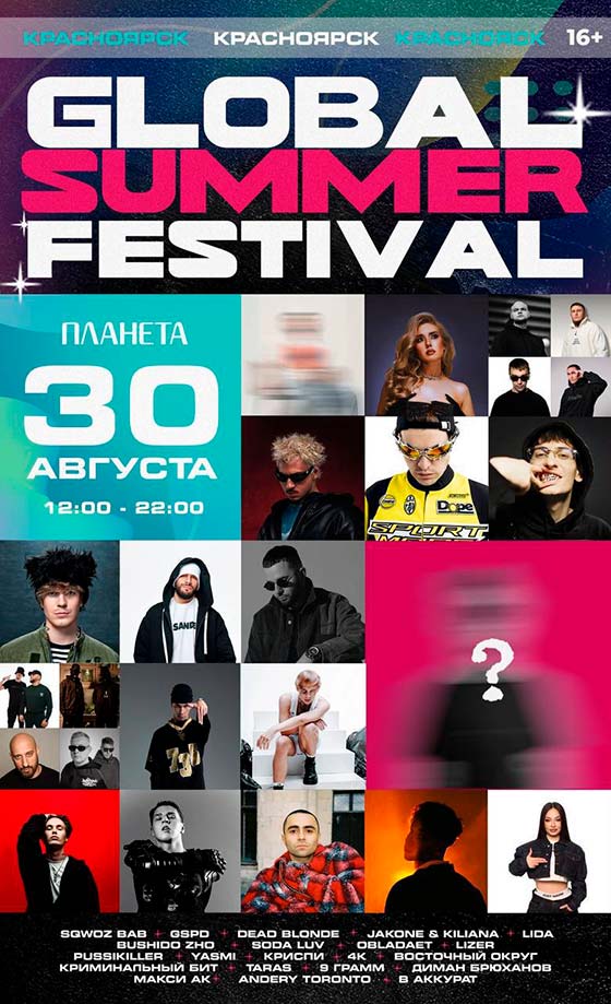 26+ топовых артистов собираются на одной площадке — рождается история! В этом году Global Summer Fest превращает Красноярск в эпицентр мощнейшего хип-хопа!